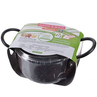 Кастрюля с крышкой 2 пр МВ (х6). Материал: алюминий. Покрытие: антипригарное. Цвет: коричневый, мраморная крошка. Диаметр: 14 см. Объем: 1 л. Дно: индукционное. Толщина стенок: 1,6 мм. Крышка: стекло. Ручки: бакелит. Цвет: черный. Размер упаковки: 21,5 х 14,5 х 9 см. Вес: 618 г. Страна производитель: Китай. Кастрюля с крышкой MAYER& BOCH изготовлена из литого алюминия, что исключает возможность деформации и гарантирует долгий срок службы. Утолщенное индукционное дно кастрюли обеспечивает идеальный контакт с конфоркой и способствует равномерному разогреванию пищи. Мраморное антипригарное покрытие позволяет готовить практически не используя масло, что значительно увеличивает полезность приготовляемой еды. Бакелитовые ручки кастрюли не нагреваются. В комплект также входит крышка из жаропрочного стекла со стальным ободом и с пароотводом. Подходит для всех видов плит, включая индукционные. Подходит для мытья в посудомоечной машине. Не использовать абразивные моющие средства и губки для мытья посуды. None