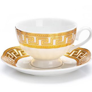 Кофейный сервиз 12 пр LR (х12). Чашка (6 шт)+блюдце (6 шт). Материал: костяной фарфор. Цвет: белый. Рисунок: золотой орнамент. Чашка: D 7,5 х 5 см/ 110 мл. Блюдце: D 11,5 см. Размер упаковки: 33 х 21 х 8 см. Упаковка: коробка. Вес: 1,200 кг. Страна производитель: Китай. Кофейный сервиз LORAINE на 6 персон выполнен из высококачественной керамики белого цвета и украшен широким золотым орнаментом в греческом стиле. Изящный дизайн придется по вкусу и ценителям классики, и тем, кто предпочитает утонченность и изысканность. Набор упакован в подарочную коробку. Каждый предмет надежно зафиксирован внутри коробки благодаря специальным выемкам. Кофейный набор - идеальный и необходимый подарок для вашего дома и для ваших друзей в праздники, юбилеи и торжества! Также он станет отличным корпоративным подарком и украшением любой кухни. В наборе: 6 кофейных чашек, 6 блюдец. None