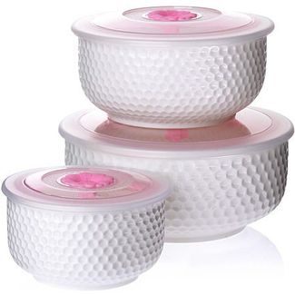 3 салатницы+3 крышки LR(х16). Форма: круглая. Материал: керамика. Крышка: пластик. Объем: 300 мл/ 500 мл/ 800 мл. Диаметр: 13 см/ 11 см/ 9 см. Высота: 9,5 см/ 12,5 см/ 15 см. Вес: 1,030 кг. Размер упаковки: 16,3 х 16,3 х 11,4 см. Страна производитель: Китай.Набор салатниц с крышками LORAINE выполнен из керамики. Гибкая крышка сделана из пластика. Набор состоит из 3-х салатниц разного размера. Изделия декорированы орнаментом, сочетая в себе классический дизайн с максимальной функциональностью. Удобная крышка из пищевого пластика позволит дольше храниться приготовленным блюдам. Такой набор послужит отличным подарком к любому празднику, а также добавит элегантности и уюта любому праздничному столу! Посуда обладает гладкой непористой поверхностью, не впитывает запахи, легко моется. Подходит для мытья в посудомоечной машине. None