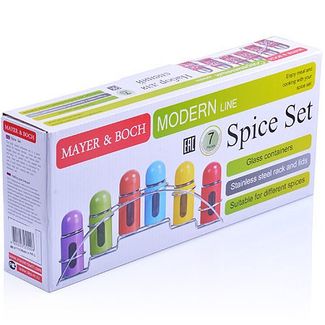 Набор для специй 6пр на подставке МВ (х12). Материал: стекло, полипропилен, железо. Подставка: нержавеющая сталь. Диаметр флакона: 4 см. Объем: 65 мл х 6 см. Размер коробки: 33,9 х 6,2 х 14,6 см. Вес: 0,830 кг. Страна производитель: Китай.Набор для специй MAYER& BOCH выполнен из высококачественного стекла, идеально подходит для любой кухни. Модный, элегантный дизайн, скрасит интерьер Вашей кухни. Баночки можно наполнять любыми, используемыми Вами специями. Герметичное закрытие, обеспечит самое лучшее хранение. Специи всегда будут свежими. Специальная подставка, делает хранение баночек еще более удобным. Наслаждайтесь приготовлением пищи с Вашим набором баночек для специй. None