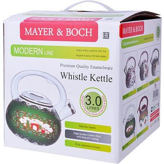 Чайник эмалированный МВ (х12). Материал: углеродистая сталь. Внешнее/внутреннее покрытие: эмаль. Дно: индукционное. Ручка: бакелит. Крышка: сталь, бакелит. Объем: 3000 мл. Вес: 1 кг. Размер упаковки: 21 х 21 х 21,5 см. Страна производитель: Китай.Чайник выполнен из высококачественной углеродистой стали. Углеродистая сталь устойчива к высоким температурам и не теряет своих свойств даже при очень сильном нагреве. Углеродистая сталь быстро и равномерно нагревается и хорошо сохраняет тепло, легкая, прочная и долговечная. Капсулированное дно с прослойкой из алюминия обеспечивает наилучшее распределение тепла. Внешняя и внутренняя поверхности чайника покрыты эмалью. Эргономичная ручка выполнена из бакелита. Носик чайника оснащен насадкой-свистком, который позволяет контролировать процесс кипячения или подогрева воды. Поверхность изделия гладкая, что облегчает уход за ним. Большой объем чайника, позволит приготовить напиток для большой семьи или компании. Эстетичный и функциональный, с эксклюзивным дизайном, чайник будет оригинально смотреться на любой кухне. Подходит для использования на всех типах плит, включая индукционные. Подходит для мытья в посудомоечной машине. None