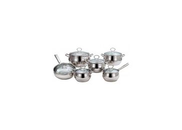 Набор посуды 12 предметов COSTO со стеклянными крышками.Зеркальное полирование.Термоаккумулирующее дно.Ручки из нержавеющей стали. None