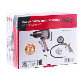 - FUBAG Набор пневмоинструмента 2 предмета (пневмогайковерт 312 Нм + пневмопистолет для накачки шин с манометром) по выгодной цене 4 830 р. руб.;