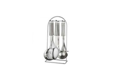 Набор кухонных принадлежностей из 7 предметовcостав: нержавеющая сталь улучшенного качества 18/10картофелемялкаложкаполовниквилка для мясашумовкавенчик полностью металлическийметаллическая прямоугольная подставка None
