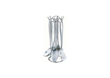 Состав: нержавеющая стальКартофелемялкаЛожкаПоловникВилкаШумовкаЛопаткаПодставкаРучки металлические, поверхность матоваяПодходит для чистки в посудомоечной машине None
