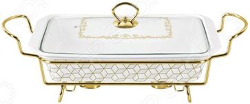 Мармит это специальная посуда, предназначенная для хранения блюд в подогретом виде. Чаще всего применяется в ресторанах, однако, даже дома во время организации торжеств мармит будет уместен. Мармиты делают из стекла, стали, керамики или мрамора и в зависимости от материала в качестве подогрева используют свечи, горелки или электрические ТЭНы. Также встречаются модели без подогрева с герметичной крышкой, сохраняющие тепло за счет двойных стенок. Мармит LARA LR12-08 Gold Cube поможет сохранить блюда, а также напитки горячими на протяжении всей вечеринки или торжественного ужина. Выполнен из фарфора высокого качества и оснащен стеклянной крышкой с отверстием для выпуска пара. Благодаря стильному и современному дизайну мармита вкусное и ароматное блюдо можно сразу подавать на стол, не перекладывая в сервировочную посуду. Особенности и преимущества Мармит устанавливается в специальную металлическую подставку с ручками, благодаря чему изделие можно легко переносить, не боясь обжечься. Чтобы сохранить блюдо теплым на протяжении всей трапезы, под подставкой мармита можно разместить несколько чайных свечей не предусмотрены в комплекте . Фарфор прекрасный материал для посуды, который отличается безопасностью, гигиеничностью и экологичностью. Не изменяет вкус пищи и не впитывает запахи. Изделие неприхотливо в уходе, легко моется и чистится. Рекомендации Не подвергайте изделие резким перепадам температур. При мытье не используйте грубые абразивные моющие средства, а также средства с содержанием хлора и аммиака. Для очищения не используйте металлическую щетку, чтобы не поцарапать поверхность. Берегите от ударов и падений. Мармит LARA LR12-08 Gold Cube станет прекрасным украшением любого праздничного стола. None Возможен самовывоз. Есть доставка.