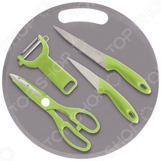 Набор кухонных принадлежностей Mallony Classico, состоящий из 5 предметов 2 ножа, ножницы, овощечистка, разделочная доска , станет незаменимым на вашей кухне. Лезвия ножей, ножниц и овощечистки изготовлены из нержавеющей стали, а ручки и разделочная доска из прочного пластика. Высококачественные материалы Нержавеющая сталь, из которой изготовлены лезвия набора, отличается экологичностью, долговечностью, легкостью заточки и устойчивостью к механическим повреждениям. Режущие полотна долго остаются острыми. Эргономичные рукояти каждого изделия удобно ложатся в ладонь. Округлая форма обеспечивает надежный захват и не дает аксессуару скользить в руке при использовании. Специальное утолщение в основании ручки предотвратит случайное соскальзывание пальцев на режущую часть. Практичный набор из 5 предметов Если вы хотите приобрести надежный, удобный, практичный комплект аксессуаров для нарезания и обработки продуктов, то предлагаем купить набор кухонных принадлежностей Mallony Classico. С этими предметами вы почувствуете себя профессиональным шеф-поваром, который создает кулинарные шедевры день за днем. В комплектацию набора входят 5 незаменимых на любой кухне аксессуаров: Нож разделочный длина: 14 см; толщина стали: 1,0 мм . Нож для фруктов длина: 9 см; толщина стали: 0,8 мм . Ножницы толщина стали: 1,2 мм . Доска разделочная круглая диаметр: 30 см; толщина: 2,7 мм . Овощечистка размер: 12,5х7,5 см . Преимущества: Универсальность применения. Оптимальная комплектация. Гигиеничность. Современный дизайн. Безопасность во время эксплуатации. None Возможен самовывоз. Есть доставка.