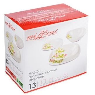 - MILLIMI Верона Набор столовой посуды 13 пр., опаловое стекло, квадратная форма, 180111 по выгодной цене 3 799 р. руб.;
