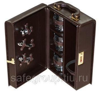 Мини-бар «Винный Компакт» (3 персоны) Набор "Мини-бар «Винный Компакт» (3 персоны)" состоит из: Кейса из искусственной кожи: 1 шт. Стакан стеклянный: 3 шт. Штопор сомелье: 1 шт. Щипцы для сахара: 1 шт. Пробка универсальная для бутыли: 1 шт. Чехол из спанбонда (нетканый мягкий материал): 1 шт. Размер закрытого изделия: 23,5х43,0х14,5 см Вес изделия: 3,1 кг None