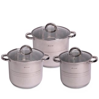 Набор кастрюль 6 предметов (4л, 5.5л, 7л; полые ручки) из нержавеющей стали Kamille