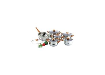 состав: нержавеющая сталь ковш 1,5 л кастрюля 1,5 л кастрюля 2,1 л кастрюля 3 л кастрюля 6 л сковорода 2,6 л и диаметром 24 см крышки стеклянные ручки пластмассовые под дерево None