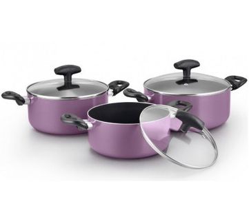 Бренд: GalaxyМодель: GL9504Тип:набор посудыМатериал: литой алюминийМатериал ручек: термостойкий пластик (бакелит)Материал крышек: термостойкое стеклоТолщина стенок: 3ммЯпонское антипригарное покрытие «Silkware»Состав набора: кастрюля 5л с крышкой; кастрюля 4л с крышкой; кастрюля 3л с крышкой;Подходит для всех типов плит, включая индукционныеЦвет: сиреневыйВес: 4,24кг оплата нал/безнал, карта Возможен самовывоз. Есть доставка.