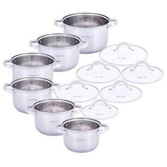 Набор посуды Kamille 12 предметов (кастрюли 1,8л, 2.5л, 2,5л, 3,8л, 3,8л, 6.5л) из нержавеющей стали