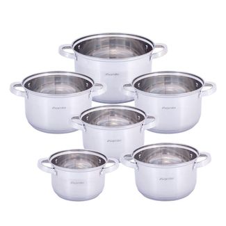 - Набор посуды Kamille 12 предметов (кастрюли 1,8л, 2.5л, 2,5л, 3,8л, 3,8л, 6.5л) из нержавеющей стали по выгодной цене 5 180 р. руб.;