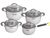 Количество предметов, шт. - 8 Материал корпуса - нержавеющая сталь 18/10 Крышки - термостойкое стекло, силикон, нержавеющая сталь 18/10 Ручки - нержавеющая сталь 18/10 с силиконовыми вставками Полировка - зеркальная Дно – 5,7 мм, капсулированное Стенки – 0,7 мм Способ крепления ручек – точечная сварка Отверстия для выхода пара – есть Шкала литража - есть None