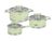 Ковш с крышкой - 1,5 л Кастрюля с крышкой - 3,0 л Кастрюля с крышкой - 5,2 л Количество предметов, шт. - 6 Материал корпуса - нержавеющая сталь 18/10 Покрытие корпуса - термостойкое Крышки - термостойкое стекло, нержавеющая сталь 18/10 Ручки - нержавеющая сталь 18/10, силиконовые вставки Дно – 4,2 мм, капсулированное Стенки – 0,6 мм Способ крепления ручек – на клепках Отверстия для выхода пара – есть Отметки литража - есть None