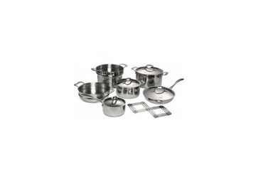 Состав набора: сотейник с крышкой - нержавеющая сталь - серебристого цвета - диаметр 16 см - объем 1.5 л кастрюля с крышкой - нержавеющая сталь - серебристого цвета - диаметр 20 см - объем 3.3 л кастрюля с крышкой - нержавеющая сталь - серебристого цвета - диаметр 24 см - объем 5.2 л сковорода с крышкой - нержавеющая сталь - серебристого цвета - диаметр 24 см - антипригарное покрытие пароварка для спагетти - нержавеющая сталь - серебристого цвета - диаметр 24 см пароварка - нержавеющая сталь - серебристого цвета - диаметр 24 см подставка - нержавеющая сталь - серебристого цвета None