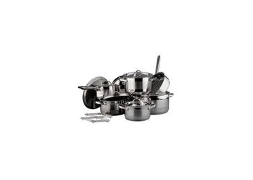 *Количество предметов:13 *Сковорода с крышкой:24 см *Подставка:1 шт.,из нержавеющей стали 18/10 *Кастрюля 24см с крышкой-6,5 л *Кастрюля 20см с крышкой-3,7 л. *Кастрюля 18 см с крышкой - 2,6 л. *Кастрюля 16 см с крышкой - 1,8 л. *Сотейник 16см с крышкой-1,8 л. *Материал:Высококачественная нержавеющая сталь Ferrinox 18/10 *Крышки:Максимально плотный контакт крышки с емкостью обеспечивает сохранность всех необходимых витаминов. *Дно:Конструкция двойного дна ускоряет аккумуляцию тепла - дно и стенки нагреваются быстро и равномерно. *Ручки:Благодаря специальному заклепочному соединению и точно рассчитанной толщине стали, ручки нагреваются незначительно даже при длительном процессе приготовления. *Пригоден для использования на: электрических,газовых,керамических,индукционных плитах *Пригоден для мытья в посудомоечной машине None