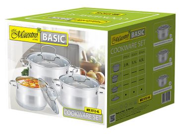 Набор кастрюль MR-3512-6L станет отличным помощником в приготовлении супов, гарниров и других блюд. Посуда выполнена из экологичной нержавеющей стали, которая не вступает в реакцию с продуктами, не выделяет вредных веществ и легко очищается от остатков пищи. Многослойное дно равномерно распределяет тепло и дольше сохраняет температуру даже после выключения конфорки. Благодаря прозрачным крышкам удобно наблюдать за приготовлением.<br>