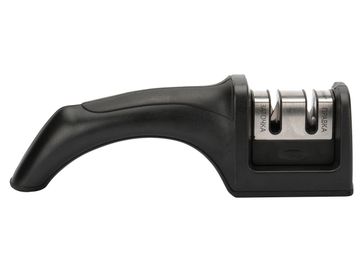 Точилка для ножей Attribute — практичная и функциональная модель, выполненная в строгом дизайне. Эргономичная ручка удобно ложится в ладонь и обеспечивает устойчивость и комфорт при использовании. Точилка имеет два модуля, один из которых — шлифовальный — изготовлен из высокопрочной стали и предназначен для быстрой заточки, а второй выполнен из керамики и подходит для доведения лезвия до нужной остроты.<br>