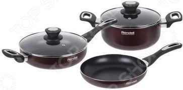 Кухня это не только пространство для приготовления пищи, но и место для кулинарного творчества и вдохновения. Поэтому для каждой хозяйки важно создать внутри этой комнаты максимально удобные и комфортные условия оснастить ее современной техникой, позаботиться о посуде и полезных кухонных приборах. Набор посуды Rondell Praktika станет надежным помощником на кухне. Состоит из пяти предметов кастрюли, сотейника, сковороды и двух крышек. Высокое качество исполнения, современный дизайн и удобство в повседневном использовании непременно придутся по душе ценителям комфорта. Набор идеально подойдет как опытному повару, так и начинающему кулинару для приготовления пищи. Оцените преимущества и особенности модели Изделия выполнены из алюминия, который широко распространен при изготовлении кастрюль и сковородок. Металл легкий и обладает высокой теплопроводностью. Например, в сравнении с чугуном его теплопроводность больше в 10 раз, а с нержавеющей сталью в 4 раза, поэтому процесс приготовления займет меньше времени и уменьшит затраты на газ или электричество. Внутренняя поверхность посуды покрыта прочным двухслойным антипригарным покрытием Xylan Plus, которое отличается своей безопасностью и хорошей сопротивляемостью к высоким температурам. Покрытие не позволяет алюминию вступать в химические реакции с щелочами, кислотами, пищевыми продуктами, водой или бытовыми моющими средствами. Благодаря отличным антипригарным свойствам пища при приготовлении не пригорает, не прилипает, а жира для жарки почти не требуется. Подойдет для людей, ведущих здоровый образ жизни. Стеклянная крышка с отверстием для выпуска пара позволяет наблюдать за процессом приготовления пищи, а металлический ободок защищает ее от сколов. Ручки кастрюли, сотейника и сковороды изготовлены из термостойкого бакелита с силиконовым напылением, благодаря чему они практически не нагреваются и в процессе приготовления за них можно браться без использования прихваток или перчаток. За счет гладкой поверхности уход з