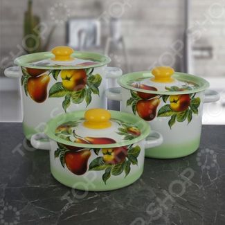 Набор кастрюль Сибирские товары Дары лета состоит из 3-х кастрюль объемом 2 л, 3,5 л и 5,5 л. Они отлично подходят для приготовления и хранения различных блюд. Качественные материалы, оригинальный дизайн Кастрюли изготовлены из качественной стали, покрытой эмалью с декоративным рисунком. Набор подходит для газовой, галогенной, индукционной, стеклокерамической, электрической плиты. Просто очищать Рекомендуется использовать мягкие губки и неабразивные моющие средства. Преимущества: Крышки ускоряют приготовление пищи. Внутренняя поверхность безопасна для продуктов питания. Пластиковые ручки на крышках помогают избежать ожогов. None Возможен самовывоз. Есть доставка.