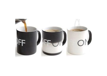 Кружка on/off необычная термокружка on/off. при изменении температуры цвет сменяется с черного на белый как выключатель и слово off сменяется на on. разнообразь свою кухню. зарядись хорошим настроением с утра с этой великолепной кружкой on/off. характеристики материал: керамика объем: 350 мл. None Есть доставка.