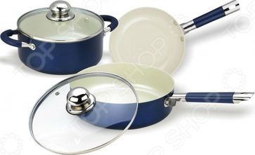 Кухня это место, где всегда приятно провести время, насладившись едой, приготовленной собственными руками. Для того, чтобы сделать пребывание на ней максимально комфортным, нужно предусмотреть все мелочи Набор кухонной посуды с внутренним керамическим покрытием Vitesse VS-2223 это комплект высококачественной посуды, необходимой для каждой кухни. Он состоит из 5 предметов: кастрюли с крышкой объемом 2,8 литра, диаметром 20 см, высотой 9 см; сковороды с крышкой диаметром 24 см, высотой 7 см; сковороды: диаметром 20 см, высотой 4,5 см. Такой комплект идеально подойдет для жарки и тушения, варки и пассеровки. Он будет незаменим на любой кухне, поможет реализовать самые разнообразные рецепты и сделает готовку максимально комфортной. Преимущества керамического покрытия Абсолютно безопасно для здоровья человека не содержит PFOA. Не окисляется и не выделяет вредных веществ даже при воздействии высокой температуры. Позволяет готовить с минимальным количеством масла жира или же вовсе без него. Устойчиво к воздействию высоких температур можно готовить при температуре до 450 градусов . Предотвращает пригорание и прилипание пищи. Сохраняет до 80 витаминов и полезных веществ в продуктах. Устойчиво к царапинам и механическим повреждениям. Совместимо с кухонными принадлежностями из металла. Готовьте с удовольствием Посуда изготовлена из высококачественного алюминия материал отличается высокой прочностью, легок в эксплуатации. Внешнее жаропрочное покрытие синего цвета облегчает очищение посуды от жира и гари. За счет быстрого разогрева и распределения тепла значительно сокращается время готовки это, так называемый, энергосберегающий режим. Стальные рукоятки с силиконовым покрытием не нагреваются, удобно лежат в руке и не скользят. Есть отверстия для подвеса. Крышки из жаропрочного стекла со стальным ободом плотно прилегают к стенкам, сохраняя оптимальный температурный режим, позволяют наблюдать за процессом готовки. Комплект можно мыть в посудомоечной машине. С
