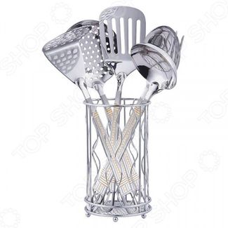Набор кухонных принадлежностей Zeidan Классика очень удобно использовать в процессе приготовления любимых блюд. Набор кухонных принадлежностей выполнен из нержавеющей стали, которая чрезвычайно устойчива к коррозии, воздействию разного рода кислот и щелочей не окисляется . Кухонный набор из 7 предметов: лопатка с прорезями, шумовка, половник, картофелемялка, поварская ложка, поварская вилка и металлическая подставка, которая имеет комбинированную полировку с рисунком под золото . Особенности набора Все изделия набора имеют комбинированную полировку с рисунком под золото . Форма подставки туба. Набор практичен и удобен в использовании. Оформлен в подарочную упаковку с пластиковой ручкой. None Возможен самовывоз. Есть доставка.