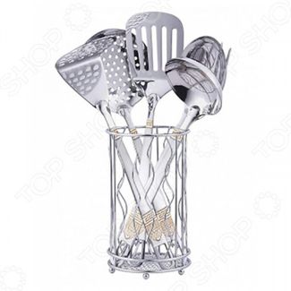 Набор кухонных принадлежностей Zeidan с подставкой Версаче очень удобно использовать в процессе приготовления любимых блюд. Набор кухонных принадлежностей выполнен из нержавеющей стали, которая чрезвычайно устойчива к коррозии, воздействию разного рода кислот и щелочей не окисляется . Кухонный набор из 7 предметов: лопатка с прорезями, шумовка, половник, картофелемялка, поварская ложка, поварская вилка и металлическая подставка, которая имеет комбинированную полировку с рисунком под золото . Особенности набора Все изделия набора имеют комбинированную полировку с рисунком под золото . Форма подставки туба. Набор практичен и удобен в использовании. Оформлен в подарочную упаковку с пластиковой ручкой. None Возможен самовывоз. Есть доставка.