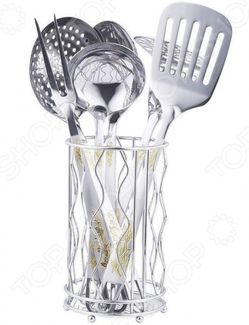 Набор кухонных принадлежностей Zeidan Виноградная лоза очень удобно использовать в процессе приготовления любимых блюд. Набор кухонных принадлежностей выполнен из нержавеющей стали, которая чрезвычайно устойчива к коррозии, воздействию разного рода кислот и щелочей не окисляется . Кухонный набор из 7 предметов: лопатка с прорезями, шумовка, половник, картофелемялка, поварская ложка, поварская вилка. Особенности набора Все изделия набора имеют комбинированную полировку с рисунком под золото . Форма подставки туба. Набор практичен и удобен в использовании. None Возможен самовывоз. Есть доставка.