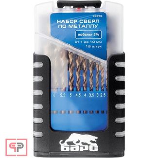 - БАРС Набор сверл по металлу, 1-10 мм (через 0,5 мм), 19 шт, Р6М5, многогранная заточка, бокс Барс в каталоге Наборы медицинских инструментов в России;