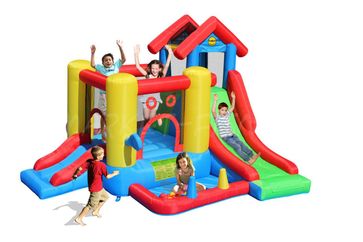 Прочность батута на растяжение до 136 кг, прочность на разрыв до 13,6 кг?прочность на соединение - до 27,2кг. Продукцию можно использовать при температуре воздуха от -10 до +40. Насос батута высокого качества, высокоэффективен, безопасен при использовании и безвреден для окружающей среды. Насос можно использовать при температуре от -15 до + 40 °C. Помимо этого, он оснащен устройством защиты. При возникновении в насосе короткого замыкания или при прочих возникших проблемах при его эксплуатации, он немедленно выключается, тем самым обеспечивает безопасность пользователю надувного батута. Насос отвечает экологическим стандартам ЕС, а также имеет сертификат безопасности GS. ТЕХНИЧЕСКИЕ ХАРАКТЕРИСТИКИ: Название артикула: Надувной батут "Потеха"Размеры изделия: 300cм x 360cм x 235cмВысота основания батута: 40cmРазмеры батута: 183cm x 162cmВысота защитной сетки-ограждения: 112cmБольшая горка 287cm x 125cmМаленькая горка 85cm x 82cmДопустимая нагрузка: 181 кгДопустимое количество детей – 4 ребенка (вес каждого ребенка не должен превышать 45 кг)Размеры прыжковой поверхности: 143cm x 122cmМаленькая горка в высоту 40cmБольшая горка ввысоту 115cmШирина скользящей поверхности маленькой горки 55cmШирина скользящей поверхности большой горки 60cmПрыжковая поверхность?ПВХ ламинированный?laminated PVC?Прочее: ламинированная ткань Оксфорд. None Есть доставка.