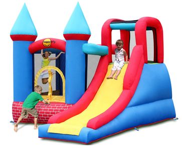 Прочность батута на растяжение до 136 кг, прочность на разрыв до 13,6 кг, прочность на соединение - до 27,2 кг. Насос батута высокого качества, высокоэффективен, безопасен при использовании и безвреден для окружающей среды. Насос можно использовать при температуре от -15 до +40°C. Помимо этого, он оснащен устройством защиты. При возникновении в насосе короткого замыкания или при прочих возникших проблемах при его эксплуатации, он немедленно выключается, тем самым обеспечивает безопасность пользователю надувного батута. Насос отвечает экологическим стандартам ЕС, а также имеет сертификат безопасности GS. ТЕХНИЧЕСКИЕ ХАРАКТЕРИСТИКИ: Название артикула: Надувной батут "Замок с горкой"Размеры изделия: 320 cm x 280 cm x 225 cmВысота основания батута: 40 cmРазмеры батута: 180 cm x 160 cmРазмеры прыжковой поверхности: 150 cm x 130 cmВысота защитной сетки-ограждения: 90 cmРазмеры горки: 190 cm x 90 cmВысота площадки горки: 115 cmШирина скользящей поверхности: 55 cmДопустимая нагрузка: 135 кгДопустимое количество детей на батут - 3 ребенка (вес каждого ребенка не должен превышать 45 кг).Прыжковая поверхность: ПВХ ламинированный (laminated PVC)Подъем: ПВХ ламинированный (laminated PVC)Горка: скользящая поверхность: ПВХ ламинированный, ламинированная ткань Оксфорд.Прочее: ламинированная ткань Оксфорд.Застежки: лавсан.Крепеж к земле: пластмасса. None Можно купить без предварительного заказа. Возможен самовывоз. Есть доставка.