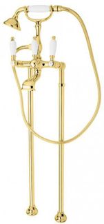 Управление: вентильное Материал: латунь Исполнение: хром, бронза, золото 24 карат Длина излива: 20,8 см Механизм: керамическая кран-букса Отверстия для монтажа: 2 отверстия Тип подводки: 1/2" Оснащение: душевой шланг, душевая лейка, дивертор, универсальный установочный комплект