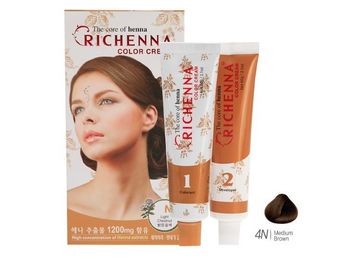 - Richenna Крем-краска для волос с хной 4n brown по выгодной цене 436 р. руб.;