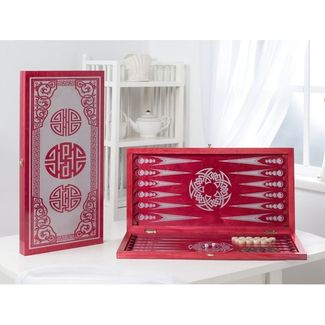 - Нарды большие малиновые, рисунок серебро "Китайский орнамент" 152-17 в каталоге Нарды в России;