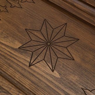 Качественная доска должна обладать не положительными эксплуатационными характеристиками, но и внешним видом. Ему мастер уделил большое внимание – грани выполнены наподобие волн, а на всех поверхностях имеется узор. Есть отдельное поле 8х8 клеток, на котором удобно играть в шашки – они позволят расслабиться между напряженными партиями в нарды.