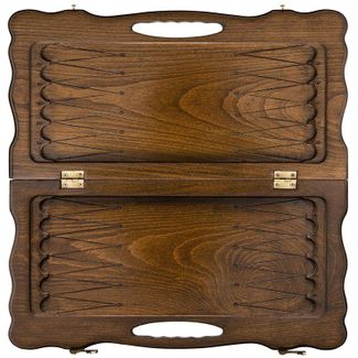Данная доска относится к серии Тигр, чье изображение и нанесено на внешней стороне одной из створок, и есть еще малый и большой вариант. Произведена она из цельной буковой древесины и вы можете быть уверены, что она прослужит очень долгое время, особенно при бережном использовании. Лакированная поверхность хорошо защищает от случайного попадания жидкостей, однако не стоит мыть ее водой. Две створки скреплены петлями с гравировкой буквы H, а для закрывания используются два крючка. Также имеется специальное поле для шашек, на котором вы сможете отвлечься от напряженной игры в нарды.