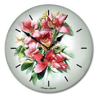 Настенные часы из стекла Династия 01-016 Букет. Материал: стекло. Диаметр: 33 см. Механизм: кварцевый, плавный ход. Открытые стрелки часов. Производитель: Россия. None