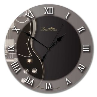 Настенные круглые часы из стекла Династия 01-025 Гитара. Материал: стекло. Диаметр: 33 см. Механизм: кварцевый, плавный ход. Открытые стрелки часов Производитель: Россия. None