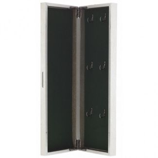 Очень интересная, стильная и качественная ключница. Дверца закрывается на магнит. Внутри обита мягким бархатистым материалом.