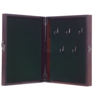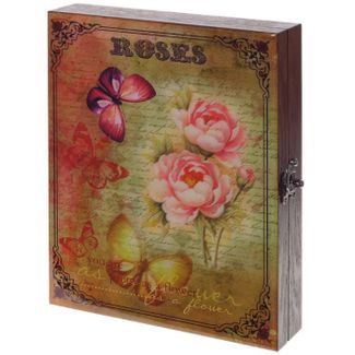 Лакированная ключница размером 28*22*5 см выполнена из дерева, с рисунком под глянцевым покрытием на фасаде, внутренняя часть 26*20*4 см обшита мягким бархатистым материалом. Ключница оснащена 5 удобными крючками для ключей, оборудована петлями для настенного размещения и элегантным замочком, фиксирующим дверцу.