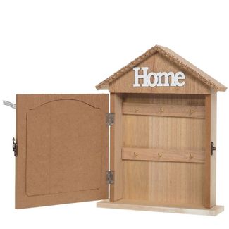 Ключница в прихожую размером 29*22*6 см оборудована 6 крючками для ключей и петлями для настенного размещения, оснащена крючком, фиксирующим дверцу. Размеры внутреннего отсека (20*17*4 см) подойдут для удобного расположения шести связок ключей.