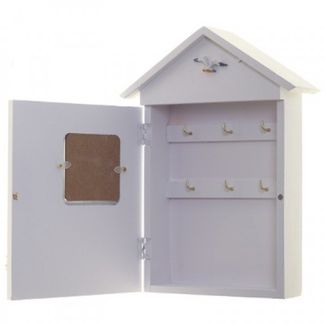 Деревянная ключница в прихожую размером 30*23*6 см оборудована 6 крючками для ключей (размер внутреннего отсека для ключей 21*16*4 см), украшена оригинальным объёмным декором и оснащена фоторамкой 7,5*7,5 см (видимая часть 6,5*6,5 см), позволяющей ей стать незабываемым персональным подарком.