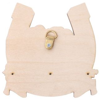 Открытая настенная ключница "Мышки" представляет собой деревянное панно оригинальной формы с нанесённым рисунком в виде забавных мышек в подкове, на котором закреплены три металлических крючка для ключей.