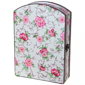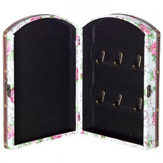 Ключница размером 30*21*7 см выполнена из дерева, с декоративным текстильным покрытием и элементами из кожзама и металла. Ключница "Обаяние" оснащена 6 удобными крючками для ключей, оборудована петлями для настенного размещения и элегантным замочком, фиксирующим дверцу. Достаточная глубина внутреннего отсека (27*18*5,5 см) позволяет не беспокоиться об удобном расположении любых связок ключей.
