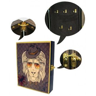 Лакированная ключница размером 25*20 см выполнена из дерева, с рисунком под глянцевым покрытием на фасаде, внутренняя часть и задняя стенка обшиты мягким бархатистым материалом. Ключница оснащена 5 удобными крючками для ключей, оборудована петлями для настенного размещения и элегантным замочком, фиксирующим дверцу.