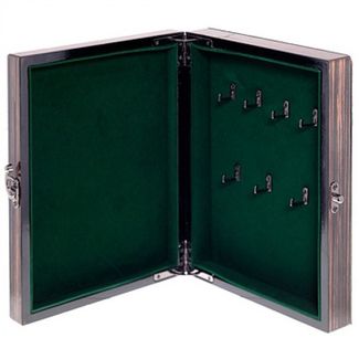 Лакированная ключница размером 25*20 см выполнена из дерева, с рисунком под глянцевым покрытием на фасаде. Внутренняя часть и задняя стенка обшиты тёмно-зелёным бархатистым материалом. Ключница оснащена 7 удобными крючками для ключей, оборудована петлями для настенного размещения и элегантным замочком, фиксирующим дверцу. Ключница полностью (кроме задней стенки) покрыта лаком.