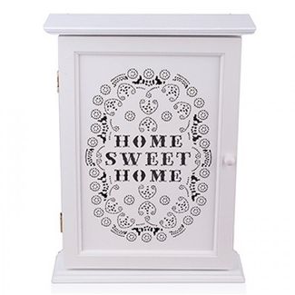Деревянная настенная ключница "Домашний уют" белого цвета, сочетая в себе стиль, практичность и удобство, уместно дополнит интерьер Вашей прихожей. Интересный дизайн и декоративная перфорация дверцы в сочетании с нежным цветовым решением позволят ключнице "Домашний уют" не только найти своё место в Вашем доме, но и привлекать к себе восхищённые взгляды гостей.
